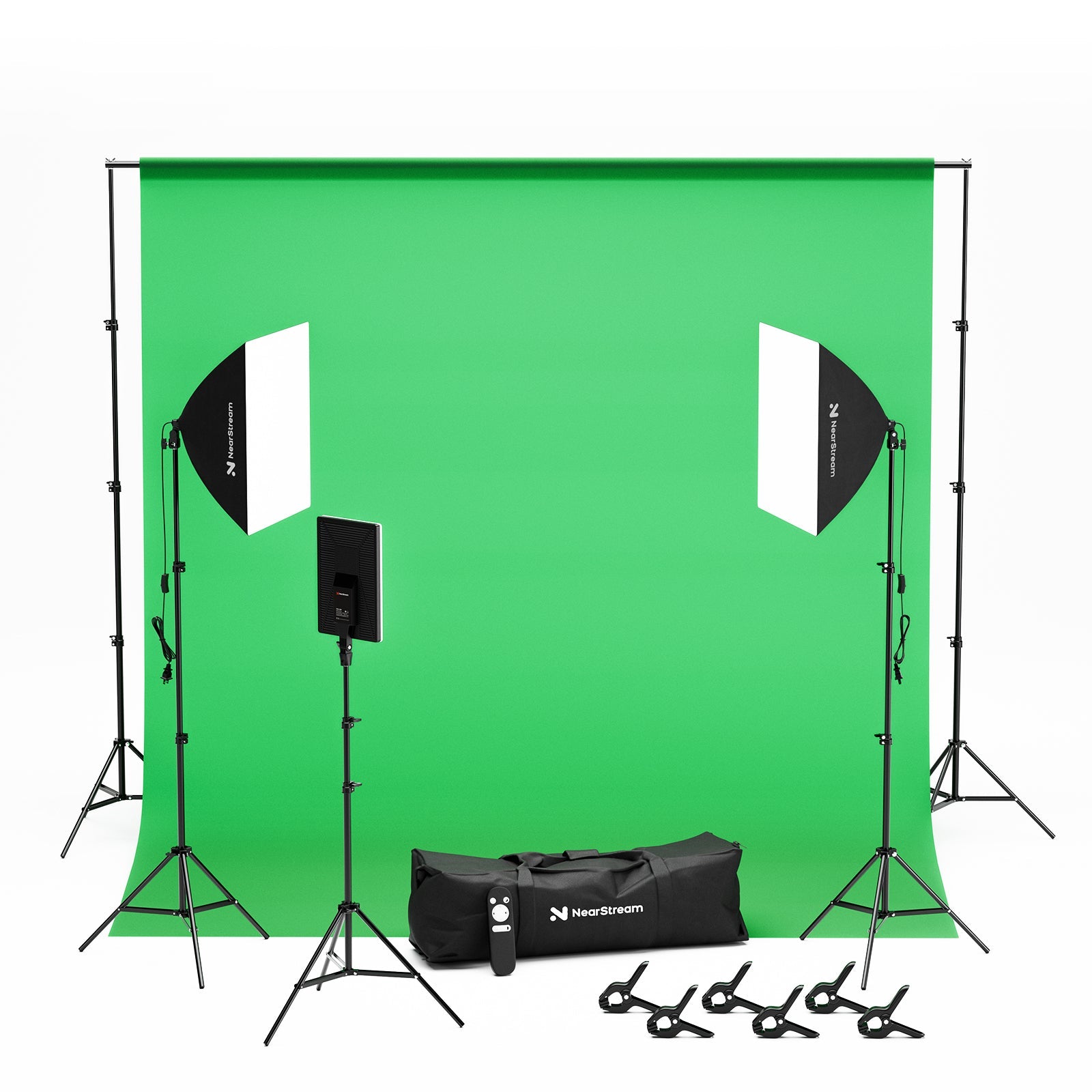 VK40 Professional Photography Lighting Kit with 9.8x9.8ft Green Backdrop, Backdrop Stand, Pannel Light with Remote Control, Softbox Lighting Kit, Studio Equipment for Photo/Video Shooting
